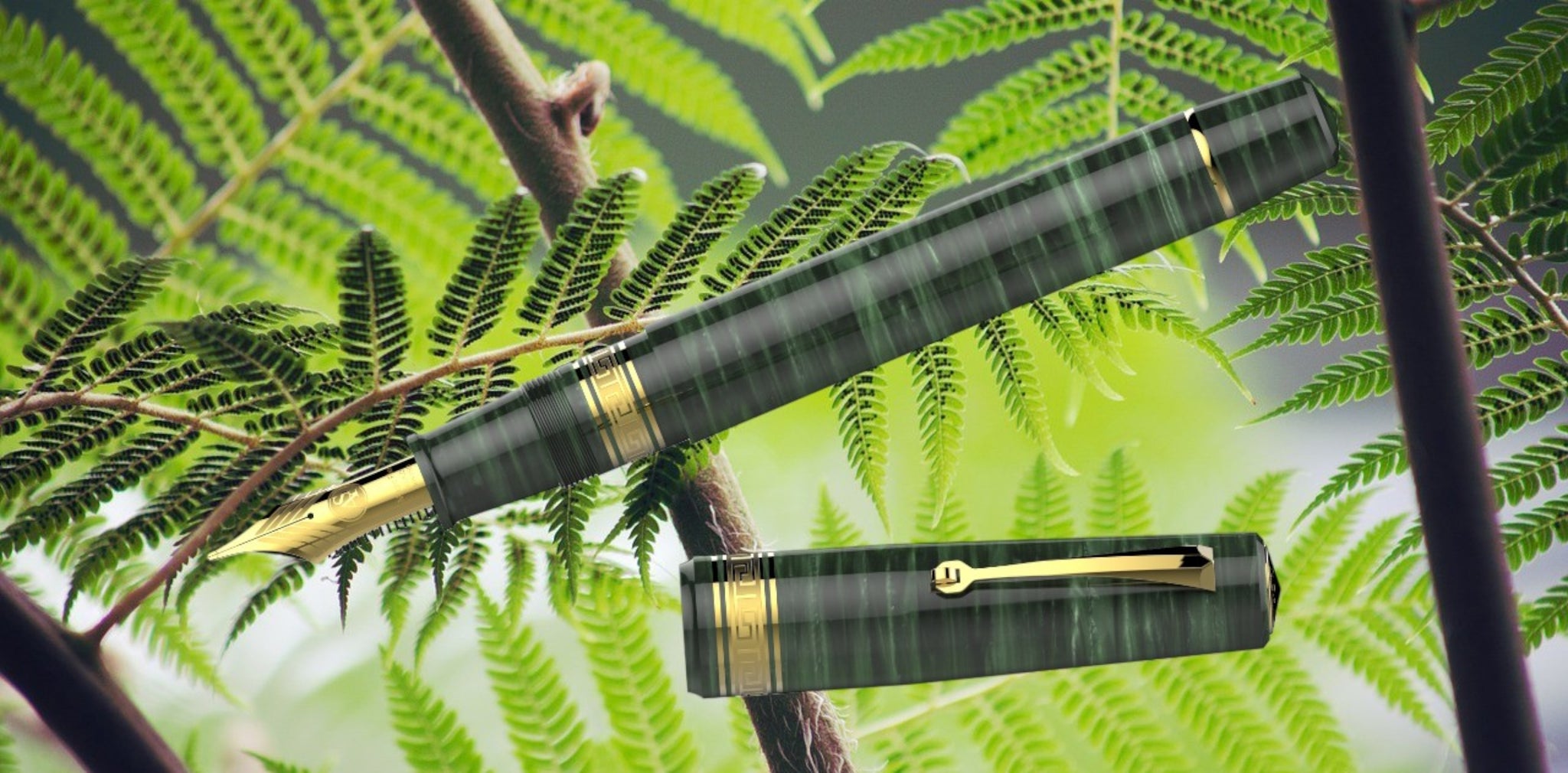 The Forest Green Midorigi is offered in your choice of radiant gold trim for a warm, classic finish or dark ruthenium trim for a mist-through-the-trees aesthetic. Each pen is fitted with ASC’s signature oversized #8 14k gold nib, available in Fine or Medium, delivering a smooth, expressive writing experience. With its robust piston-filling system and striking presence in hand, this edition blends organic beauty with masterful craftsmanship. Limited to just 65 pieces in gold trim, it’s a perfect choice for collectors who value rarity, artistry, and the quiet power of nature.